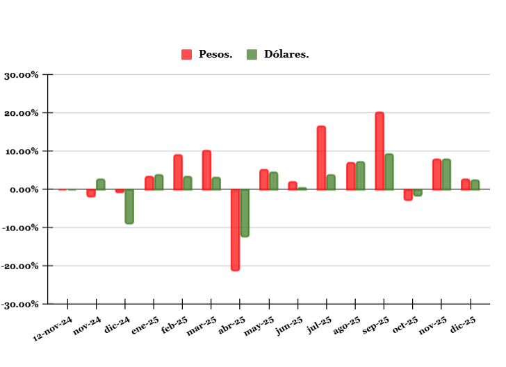 Fuente: Catalaxia S.A. Los datos de rendimiento citados representan el rendimiento pasado, el rendimiento pasado no garantiza resultados futuros. La rentabilidad y el valor principal de una inversión fluctúan, por lo que el capital de un inversor, al momento del reembolso, pueden tener un valor superior o inferior a su valor original. El rendimiento es histórico e incluye la reinversión de intereses y plusvalías. Puede obtener los datos de rendimiento actualizados al cierre del mes más reciente llamando al (0362) 5443675.