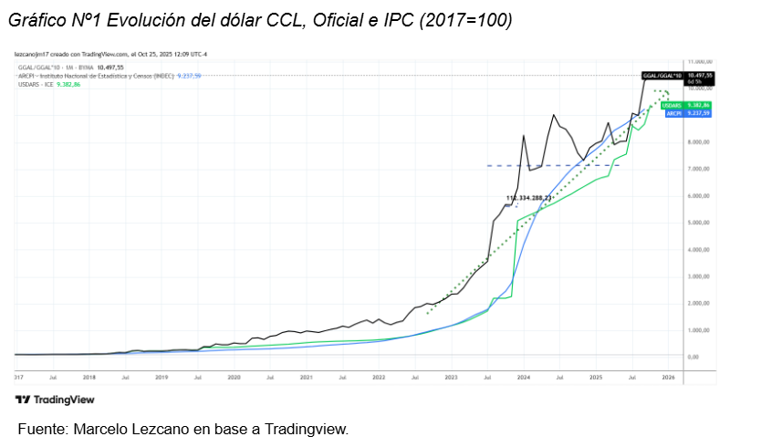 El 2025 no es una excepción, pues este año vimos caídas del 3,77% el 21 de abril y hasta el viernes 36%. Si eliminamos de la muestra señalada el año 2023, por tratarse de un periodo hiperinflacionario las variaciones quedan expresadas de la siguiente manera: min. (-1,58%), máx. (23,92%) y prom. (18,26%). Teniendo en cuenta, estos datos podemos decir que las variaciones observadas se encuentran muy alejadas de la media histórica.